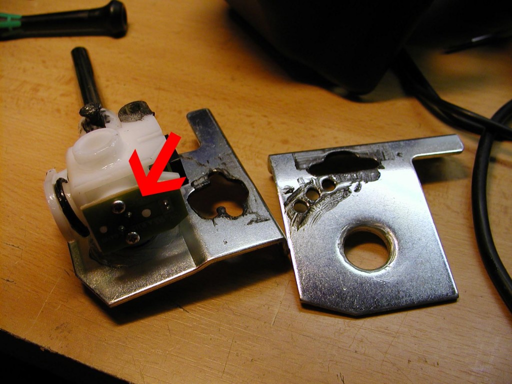 Orsaken till detta är att kontakten som sitter på andra sidan kretskortet, som trycks ner när Du trycker ner spaken,